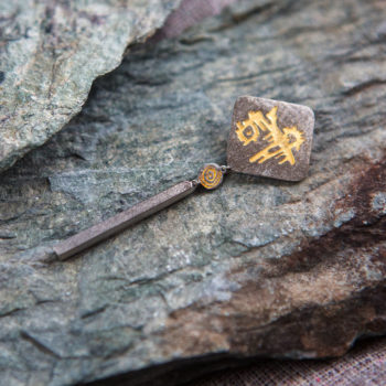 Комплект украшений «Дождь и камень» родился от слияния нескольких образов – наскальных сюжетов, нитей дождя, бахромы шаманских костюмов и ещё одного сакрального обряда.