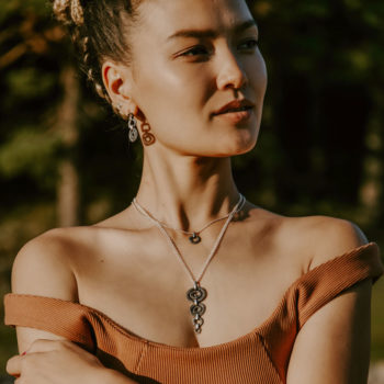 Подвеска «Большой парад планет» с чернением на двойной цепочке